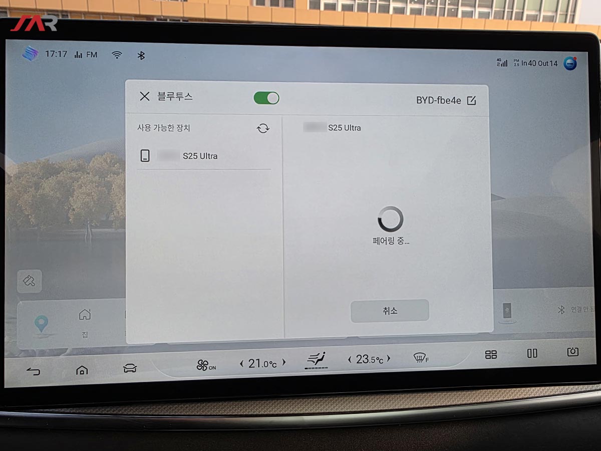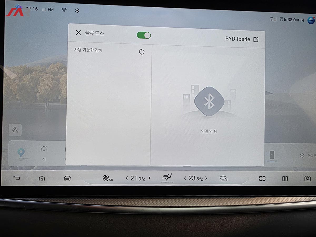 - 메인 > 블루투스 또는 전화 > 블루투스 연결 > 스마트폰에서 블루투스 기기 선택 > "BYD" 선택 > 스마트폰에서 페어링으로연결 클릭 > 완료
