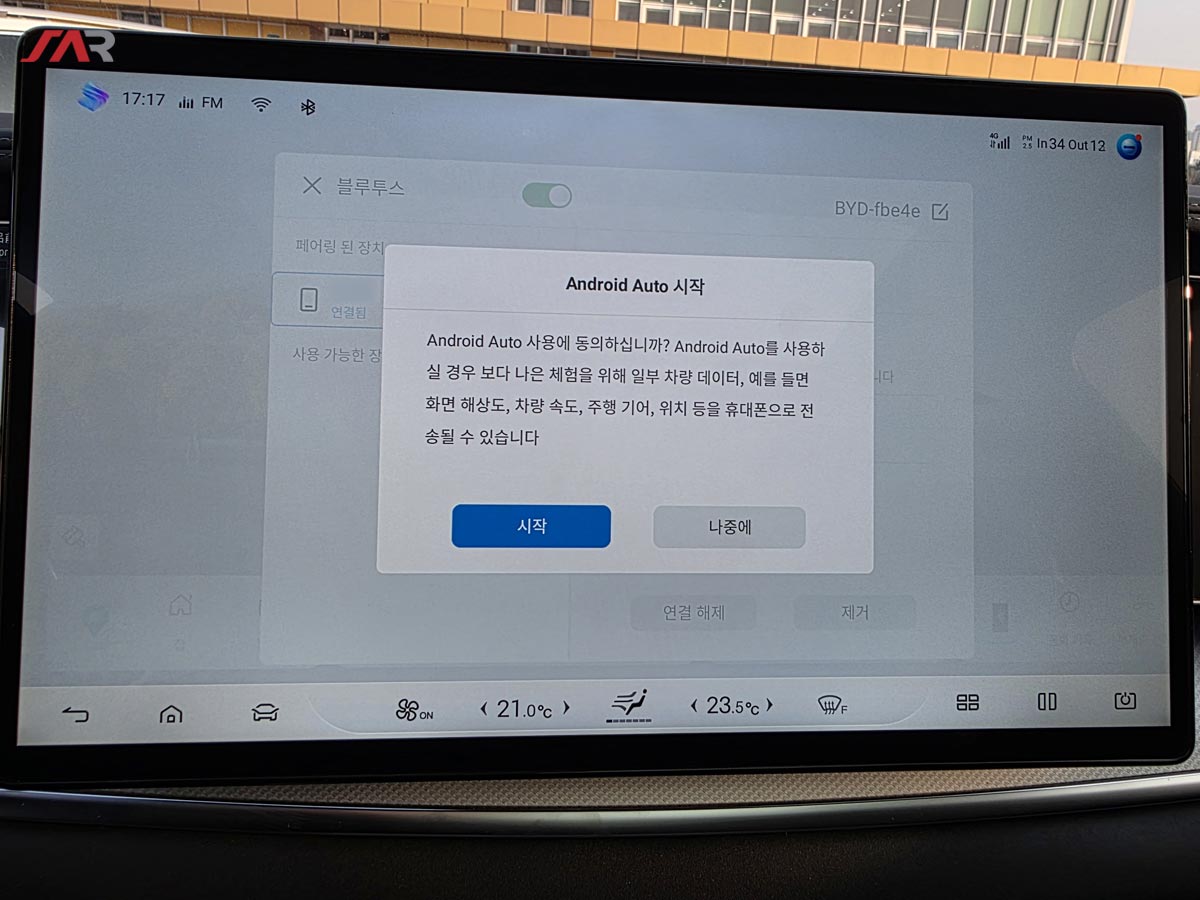 ④ 차량과 스마트폰 연결 - 차량 화면과 휴대폰 화면에 연결 메시지를 모두 ‘허용/확인’ 눌러주세요.
